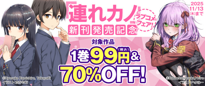 「連れカノ」の新刊発売を記念して、スニーカー文庫のラブコメ作品シリーズを対象とした大感謝電子フェアが開催!